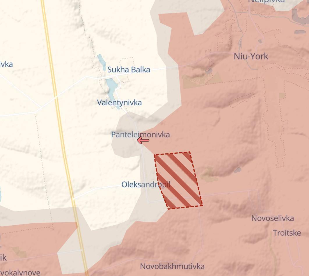 Продвижение россиян фиксирует и украинский паблик Deep State. По его данным, за последние несколько дней войска РФ заняли ряд территорий в районе Котляровки, Преображенки и Надеждинки, а также севернее, в районе Успеновки.