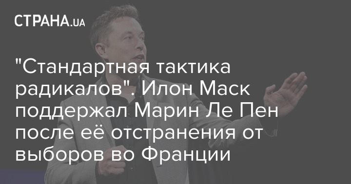 Глава Департамента эффективности правительства США миллиардер Илон Маск поддержал главу ультраправой французской партии "Национальное объединение" Марин Ле Пен, которую судебным приговором лишили возможности участвовать в выборах президента Франции.