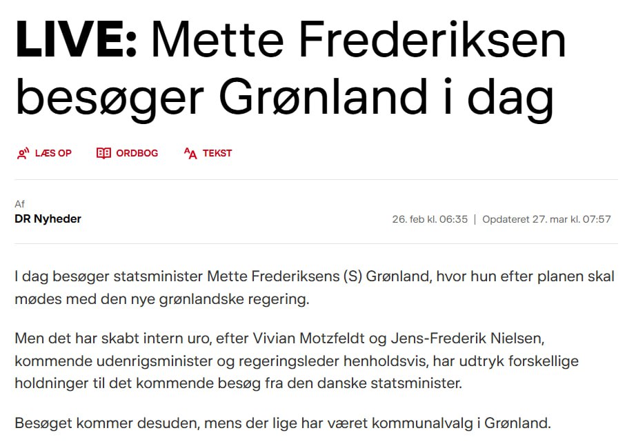 Об этом заявила премьер-министр Дании Метте Фредериксен на пресс-конференции в столице острова Нууке, передаёт радиостанция Danmarks radio.