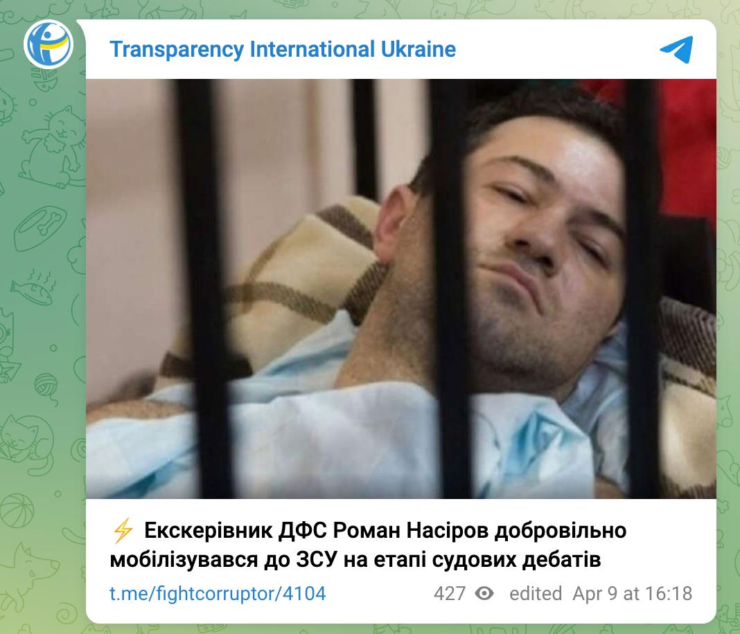 Бывший глава Государственной фискальной службы (ГФС) Роман Насиров мобилизовался в ВСУ на этапе судебных дебатов по уголовному делу, которое расследует НАБУ.