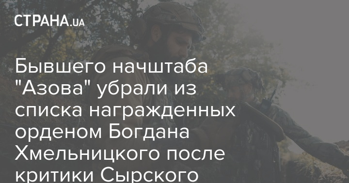 Бывшего начштаба "Азова" убрали из списка награжденных орденом Богдана Хмельницкого после критики Сырского