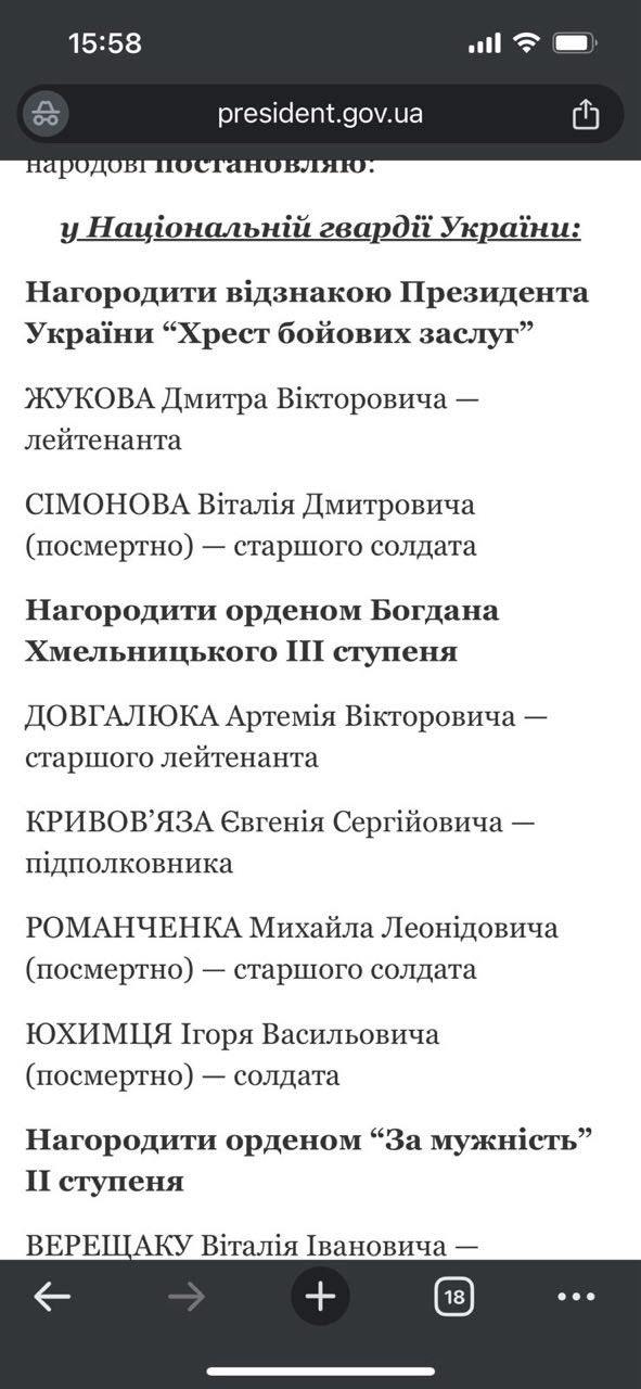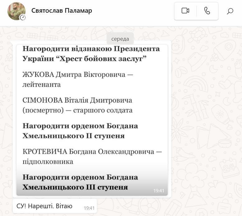 Бывший начальник штаба 12-й бригады специального назначения "Азов" Богдан "Тавр" Кротевич сообщил, что его фамилия исчезла из списка награжденных орденом Богдана Хмельницкого ІІ степени на сайте Офиса президента.