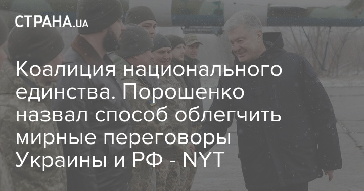 Коалиция национального единства. Порошенко назвал способ облегчить мирные переговоры Украины и РФ - NYT