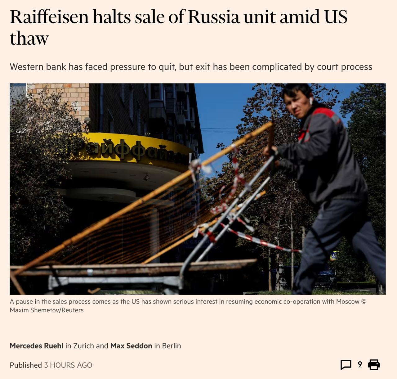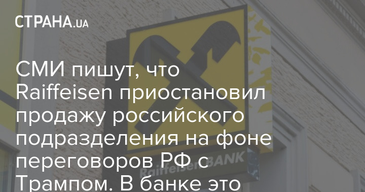 Австрийский Raiffeisen Bank приостановил продажу своего российского подразделения на фоне переговоров РФ с президентом США Дональдом Трампом.