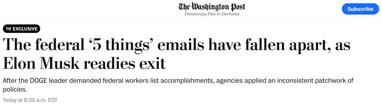 Издание сообщило, что точная дата ухода Маска пока неизвестна, однако ожидается, что его статус специального государственного служащего истечет в конце мая. Предприниматель считает, что его уход не уменьшит влияние или работу DOGE, поскольку члены этого ведомства уже закрепились во многих федеральных агентствах.