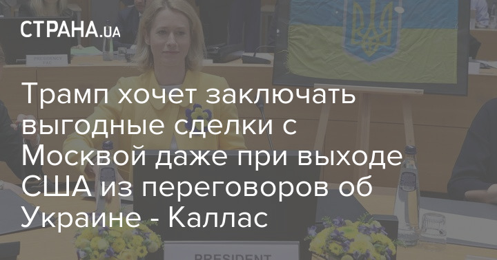 Глава европейской дипломатии Кая Каллас допустила, что даже если Вашингтон откажется от посредничества по завершению войны в Украине, президент США Дональд Трамп продолжит возобновление отношений с Россией для заключения выгодных сделок.