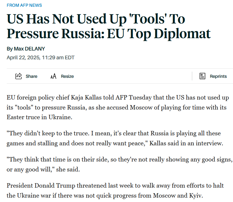 Также у Каллас есть "большой вопрос", почему США еще не использовали все свои инструменты для давления на Россию.