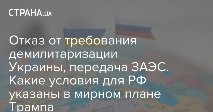Отказ от требования демилитаризации Украины, передача ЗАЭС. Какие условия для РФ указаны в мирном плане Трампа