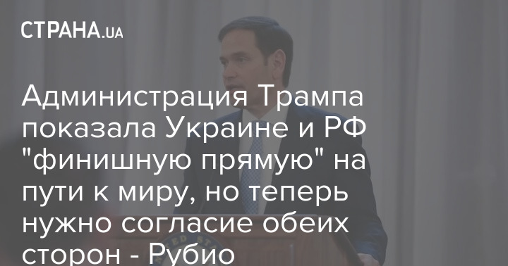 Государственный секретарь США Марко Рубио заявил, что администрация президента США Дональда Трампа показала Украине и России "финишную прямую" на пути к миру, но теперь обе стороны должны согласиться.