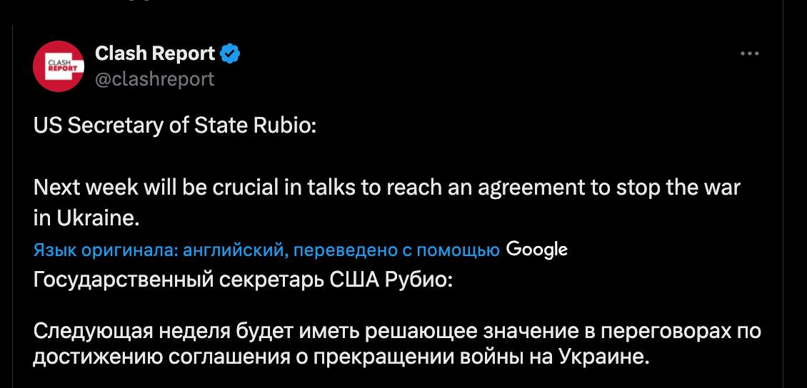 На днях Рубио заявил, что администрация США показала Украине и России "финишную прямую" на пути к миру, но теперь обе стороны должны согласиться.