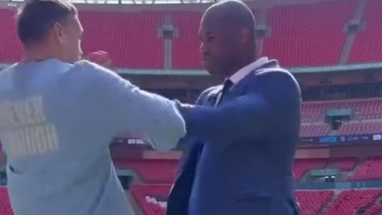 Дюбуа толкнул украинского боксера Усика во время дуэли взглядов на стадионе "Уэмбли". Видео