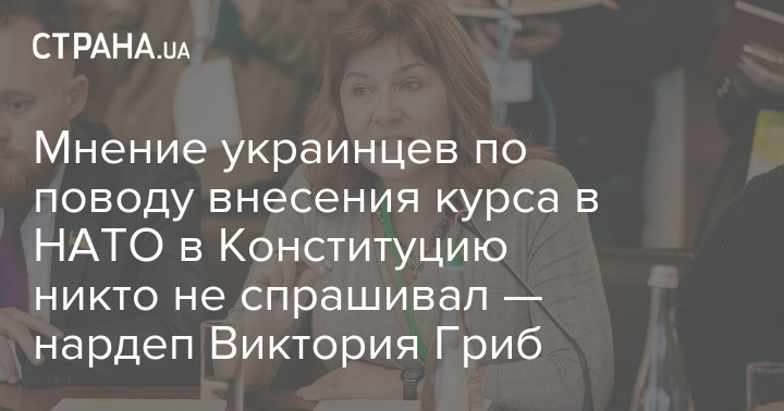 "У нас же в Конституции не всегда было НАТО. Это внесли без проведения референдума, никто не спрашивал у людей. У нас сначала внесли, а потом мы уже видели, что мы все-таки продвигались в переговорах… И если бы не было тех закрытых железных дверей, то, возможно, и ситуация была бы немножко другой. Если бы в 2008 году нас приняли все-таки в НАТО… Тогда было намного больше шансов вступить в НАТО, чем когда уже было понятно… Потому что страны в первую очередь думают про свои интересы, они очень прагматичные. А мы уже потом вносили это в Конституцию. Я считаю, — это моя позиция, — что нам в первую очередь нужно продвигаться к Европейскому союзу", - заявила Виктория Гриб.