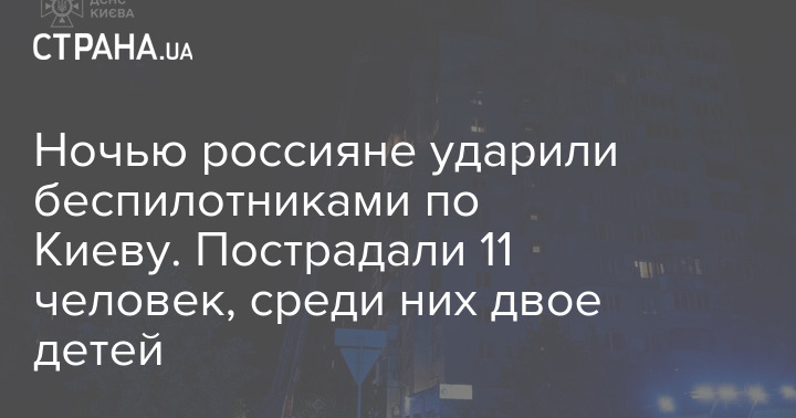 Ночью россияне ударили беспилотниками по Киеву. Пострадали 11 человек, среди них двое детей
