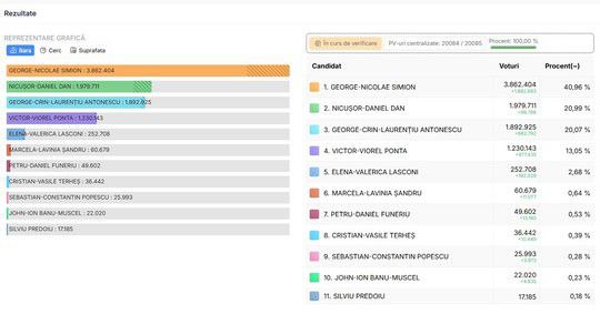 Первое место с большим отрывом занял ультраправый кандидат Джордже Симион - 40,96%.
