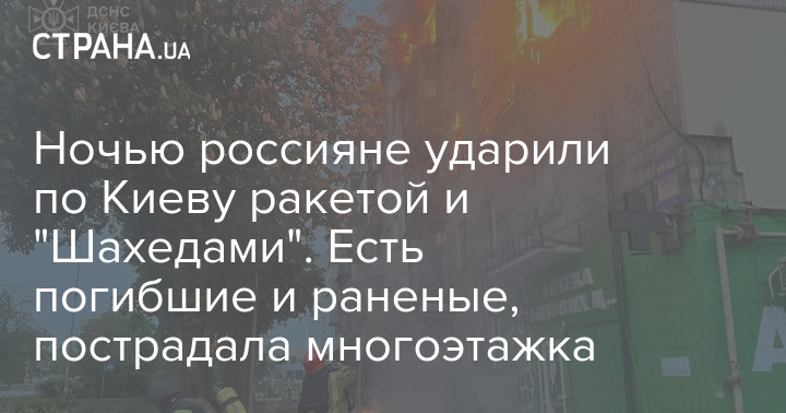 Ночью россияне ударили по Киеву ракетой и "Шахедами". Есть погибшие и раненые, пострадала многоэтажка