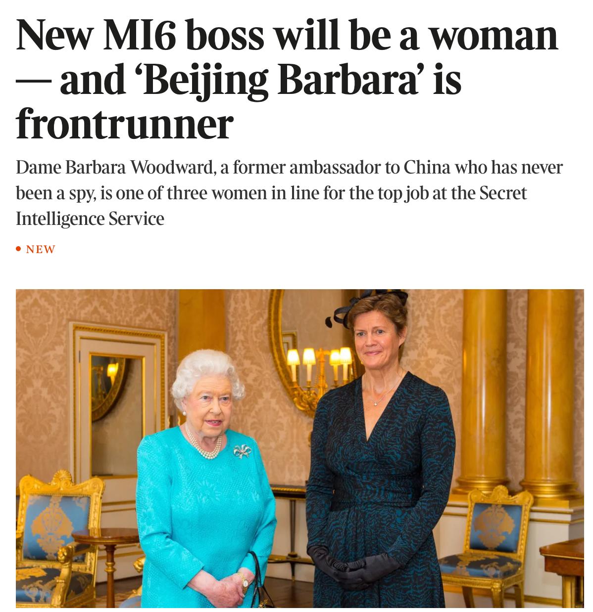 Его место впервые в истории британской разведки может занять женщина, пишет издание. Главный кандидат - бывший посол Британии в Китае Барбара Вудворд. Еще два претендента - женщины-офицеры МИ-6, чьи имена не разглашаются.