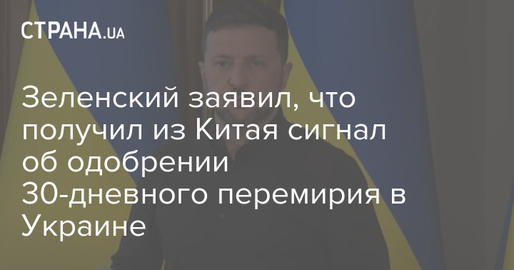 Зеленский заявил, что получил из Китая сигнал об одобрении 30-дневного перемирия в Украине