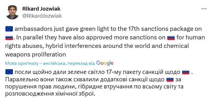 Послы Евросоюза согласовали 17-й пакет санкций против России - журналист