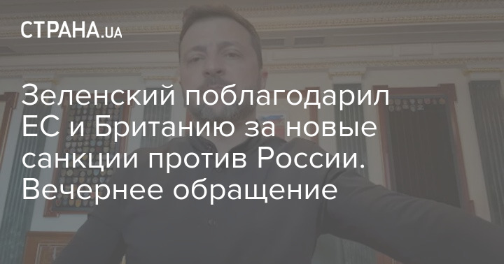 Президент Украины Владимир Зеленский выразил признательность странам Евросоюза и Лондону за новые санкции против Москвы.