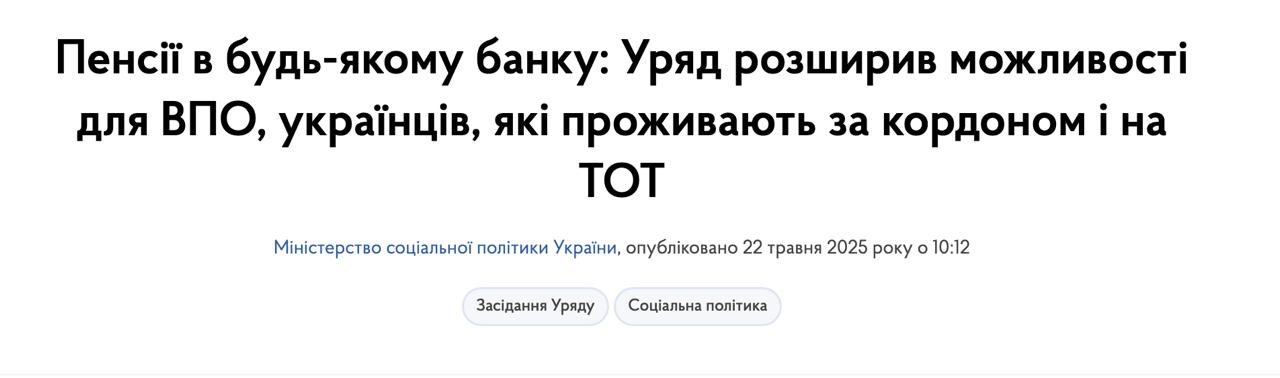 Украинские переселенцы, проживающие на временно оккупированных территориях и выехавшие оттуда за границу, теперь смогут получать пенсию не только в "Ощадбанке", но и в других уполномоченных банках или через "Укрпочту".