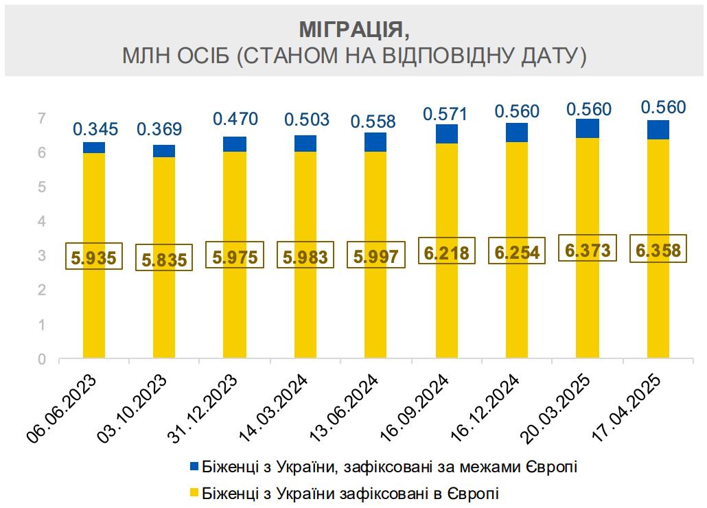 В Европе на 16 декабря 2024 года было 6,254 миллиона граждан Украины, а по состоянию на 17 апреля 2025 года - уже 6,358 миллиона человек. При этом количество беженцев за пределами Европы остается прежним - 560 тысяч человек.