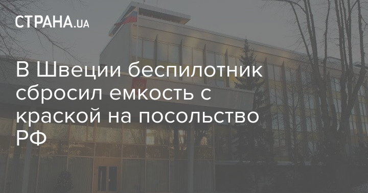 В воскресенье рано утром на территорию российского посольства в Швеции беспилотник сбросил стеклянную емкость с краской.