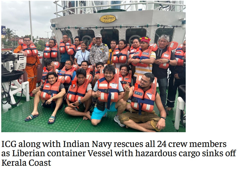 Контейнеровоз начал тонуть вечером 24 мая. Тогда береговая охрана Индии сообщала, что активно координирует спасательные операции, в том числе для оказания помощи привлекли самолёты.