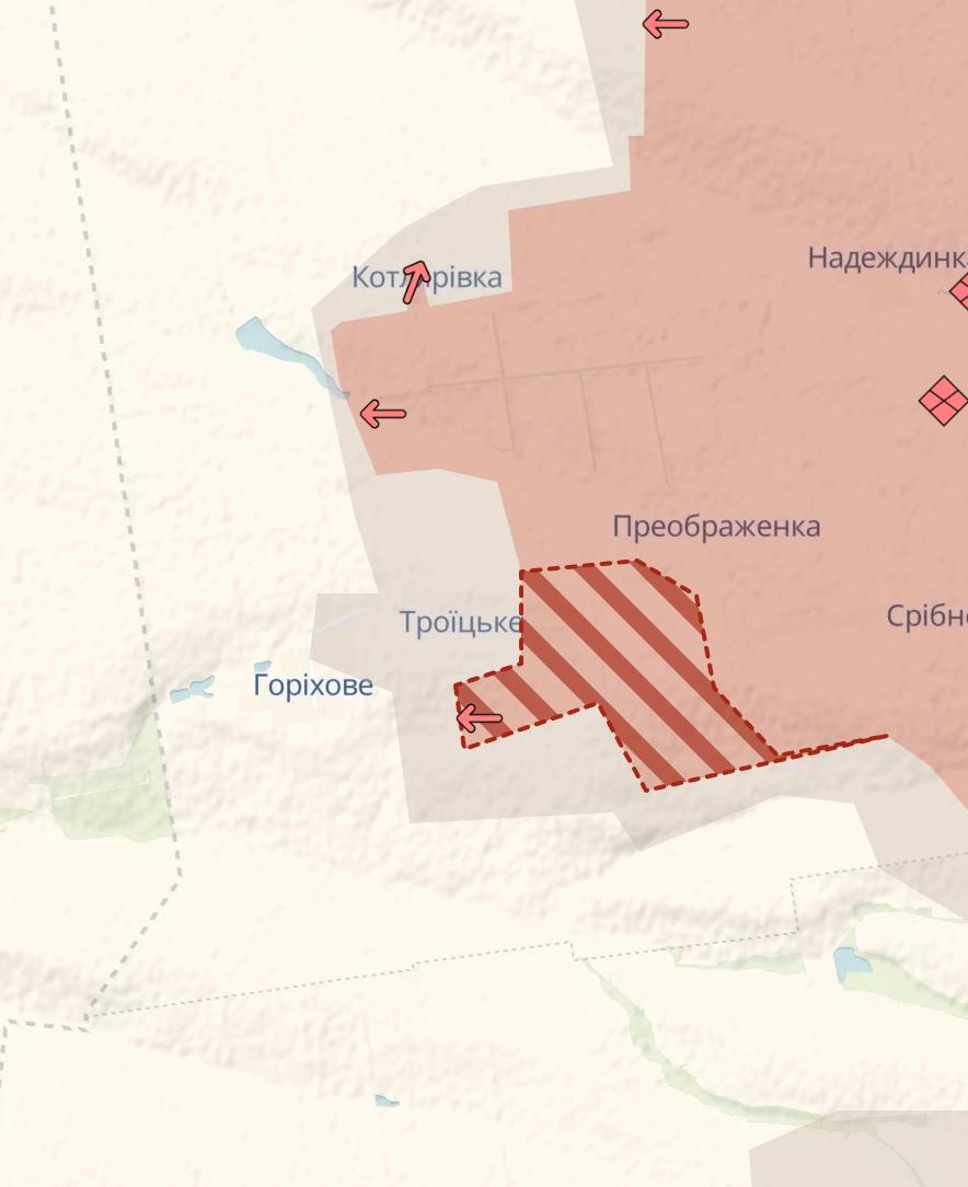 Также россияне продвинулись около Новоеленовки, в Малиновке, что по трассе на Покровск, а также у границы Днепропетровской области - около Троицкого.