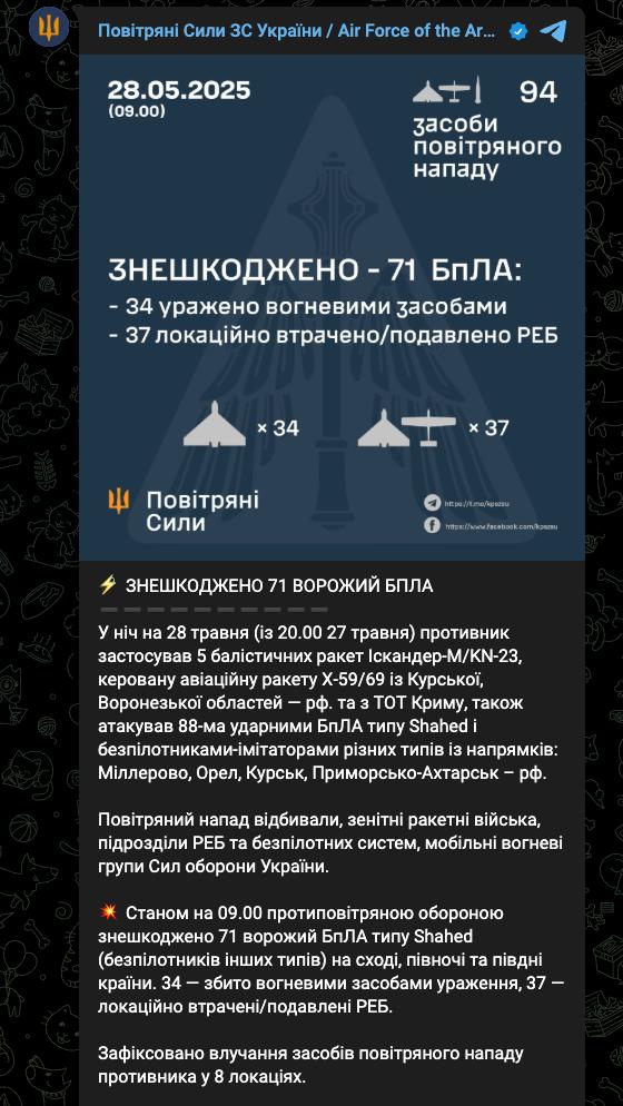 В среду, 28 мая, в Украине идет 1190-й день войны с Россией.
