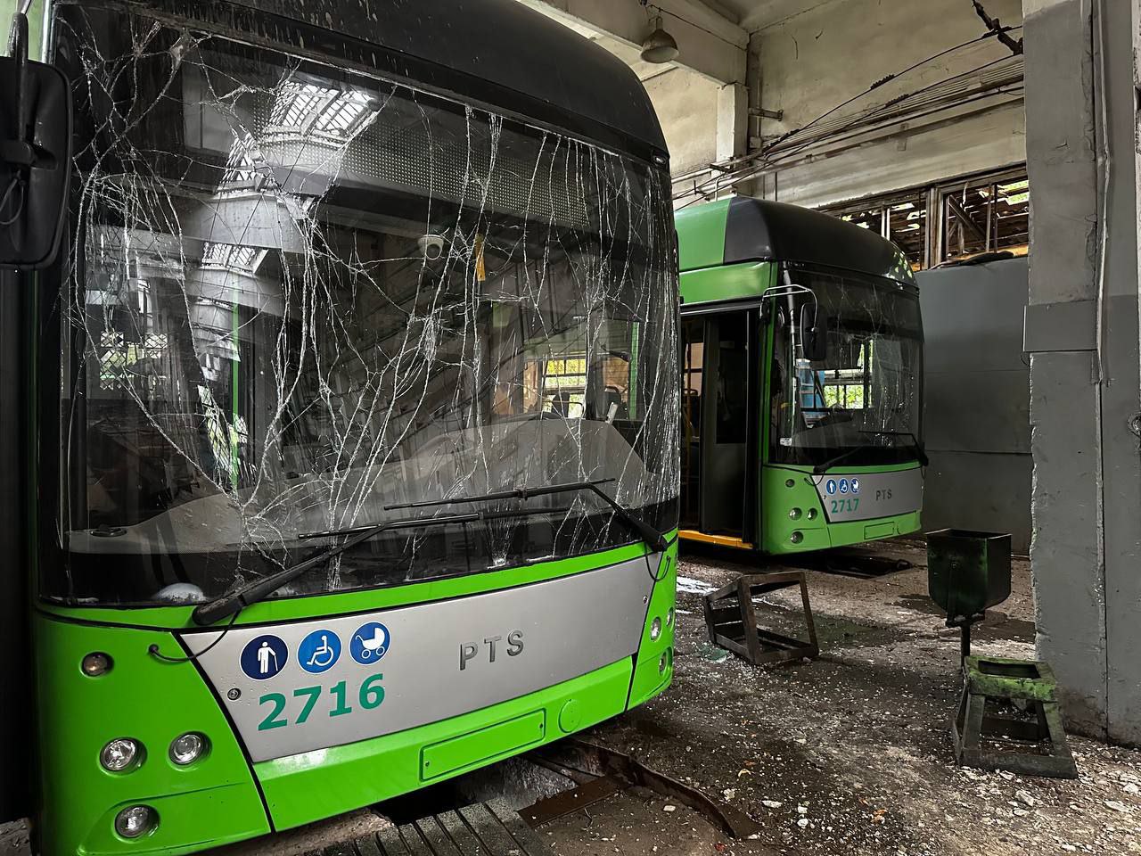 Один троллейбус уничтожен полностью, еще 18 получили различные степени повреждений.