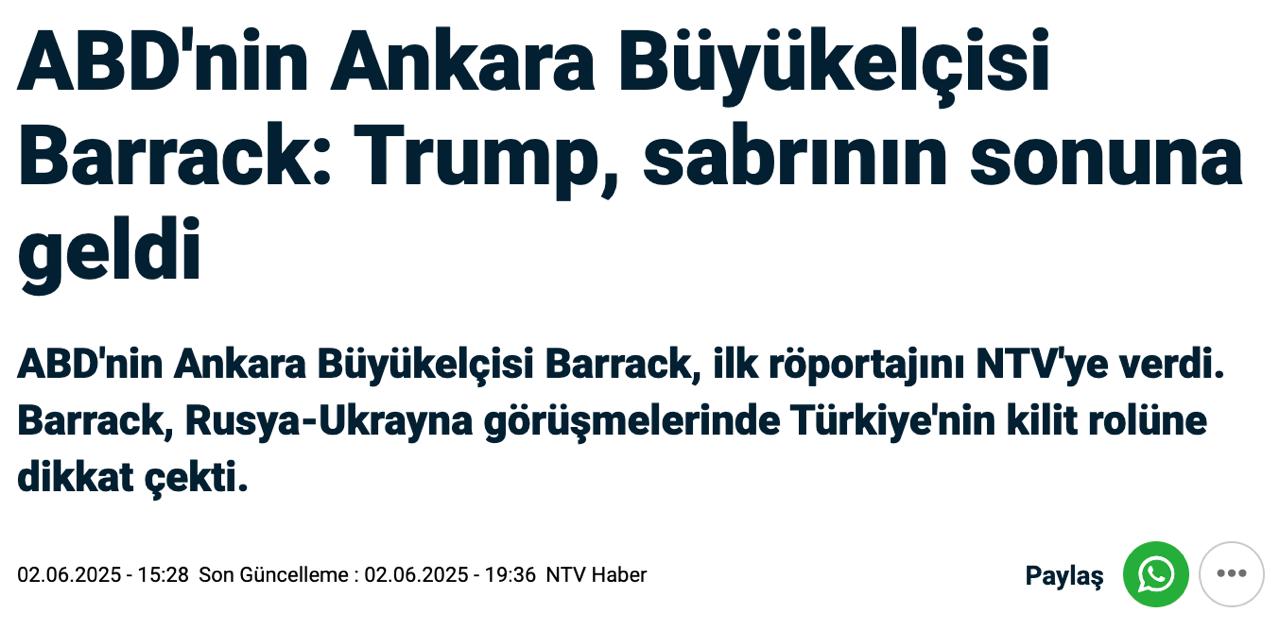 Об этом в интервью турецкому телеканалу NTV заявил американский посол в Турции Том Барак.