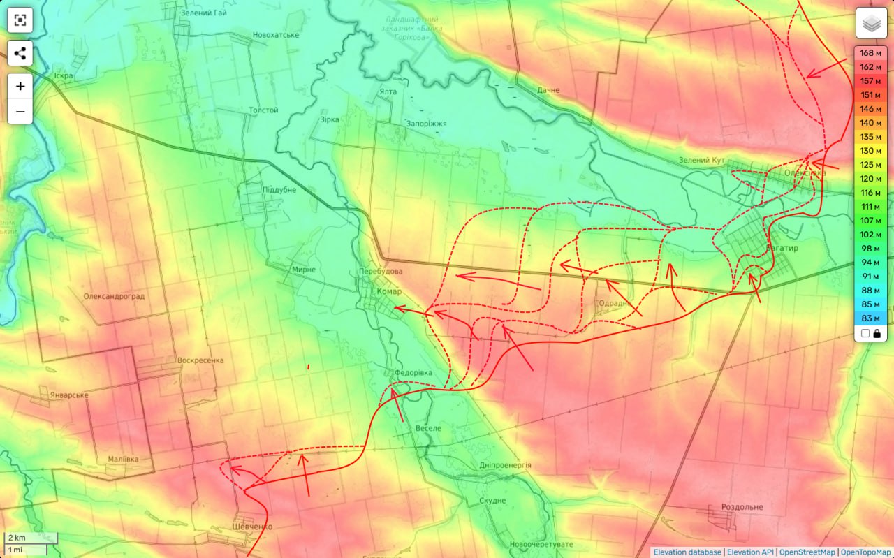 Также российские паблики утверждают, что их войска сегодня зашли на территорию Днепропетровской области западнее села Орехово и закрепились там. Украина этого не подтверждала. На карте Deep State, фронт в районе Орехового не изменился, а само село лишь частично в серой зоне.