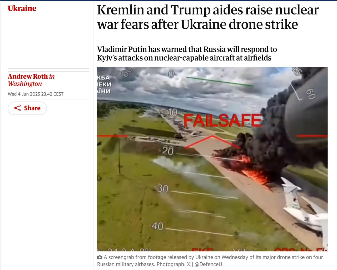 Американские чиновники и политики, скептически настроенные по поводу поддержки Украины, используют в качестве аргументов риск ядерной конфронтации и выхода конфликта из-под контроля из-за украинских ударов по стратегической авиации РФ.