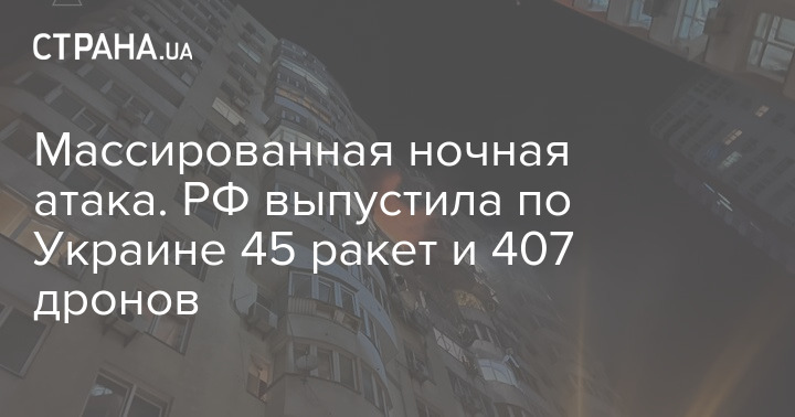 Массированная ночная атака. РФ выпустила по Украине 45 ракет и 407 дронов