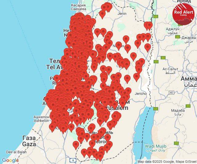21:13 Карта воздушной тревоги в Израиле. Напомним, израильская армия заявила о массовом запуске ракет из Ирана.