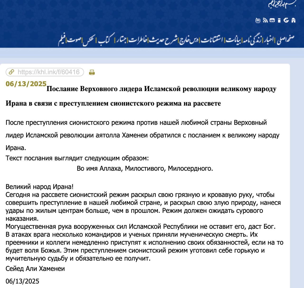 Он выпустил его в тот момент, когда израильские ракеты уже атаковали объекты в Иране.