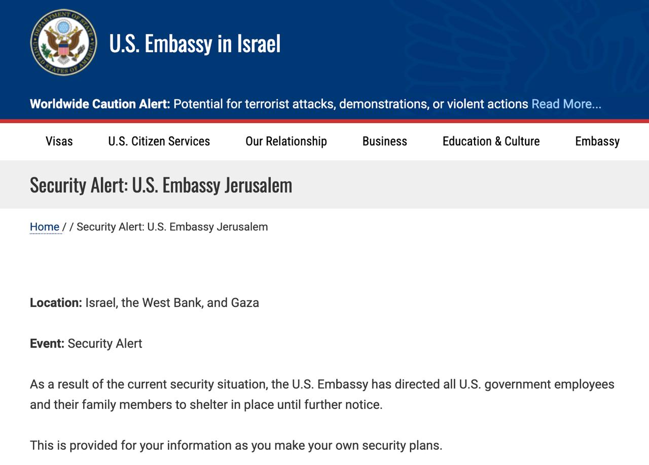 09:35 Посольство США в Израиле призвало американских госслужащих, а также их семьи, найти себе укрытия.