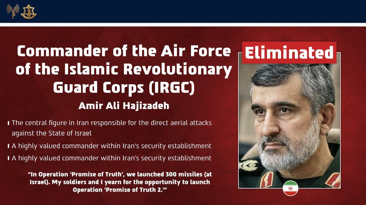 - командующий ВВС и Военно-космическими войсками КСИР Амир-Алии Хаджизаде;