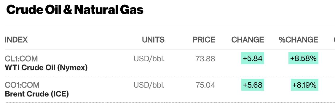 08.10 Цены на нефть выросли почти на 9% после атаки Израиля против Ирана, следует из графиков Bloomberg.