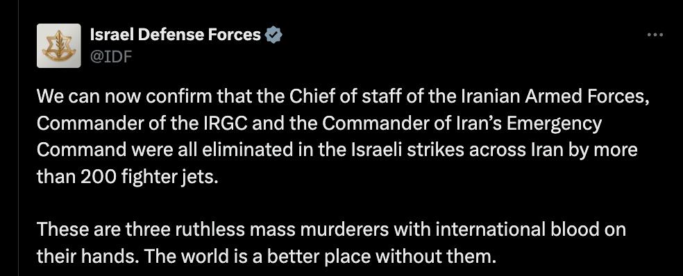 Судя по списку, были убиты многие представители верховного командования иранской армии и КСИР. И хоть им уже, по большей части, назначены преемники, но столь значительные потери военных руководителей могли стать одной из причин, по которой Иран не дал моментального ответа.