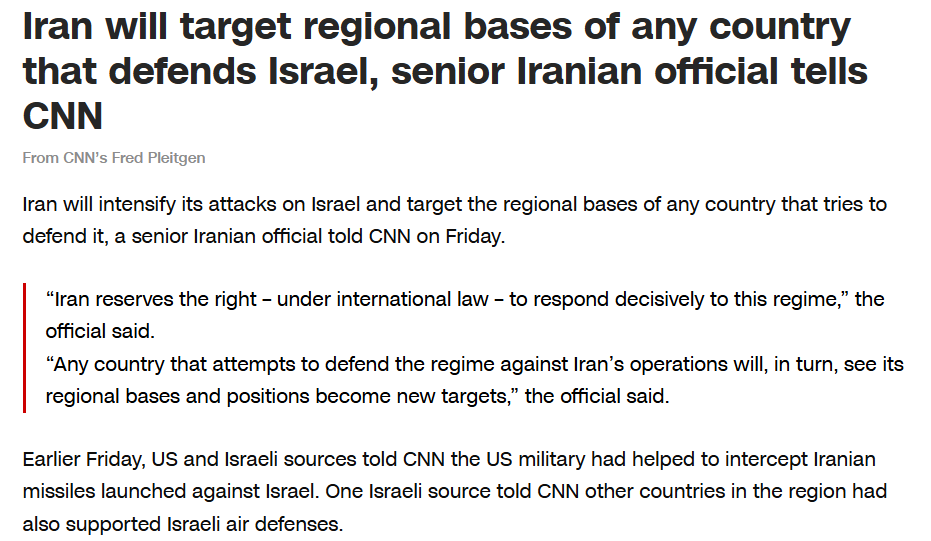 Иран угрожает нанести удары по региональным базам стран, которые защищают Израиль - CNN