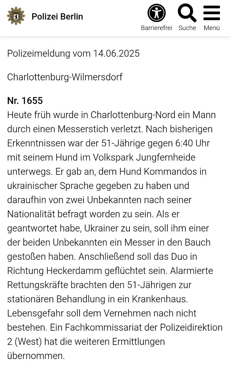 В Берлине на украинца было совершено вооружённое нападение. Мужчину ударили ножом.
