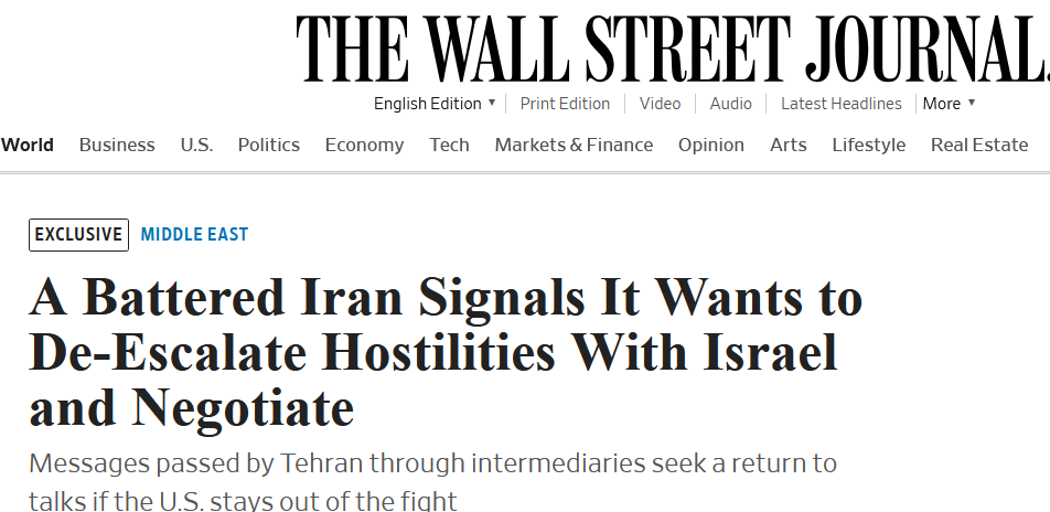 Иранские представители заявили арабским странам, что готовы вернуться за стол переговоров, если США не будут участвовать в атаках. Израилю передано, что сдержанность отвечает интересам обеих сторон.