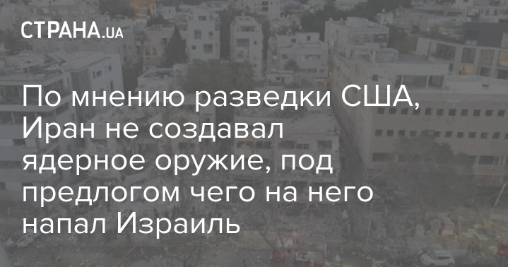 По мнению разведки США, Иран не создавал ядерное оружие, под предлогом чего на него напал Израиль