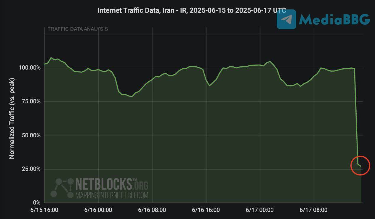 NetBlocks подтверждает значительное падение интернет-трафика в Иране.