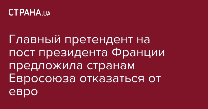 Главный претендент на пост президента Франции предложила странам Евросоюза отказаться от евро