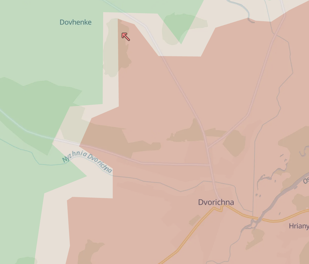 Это село со стороны недавно потерянной Двуречной Купянского района. По украинским картам, деревня наполовину под контролем РФ, а частично в "серой зоне".