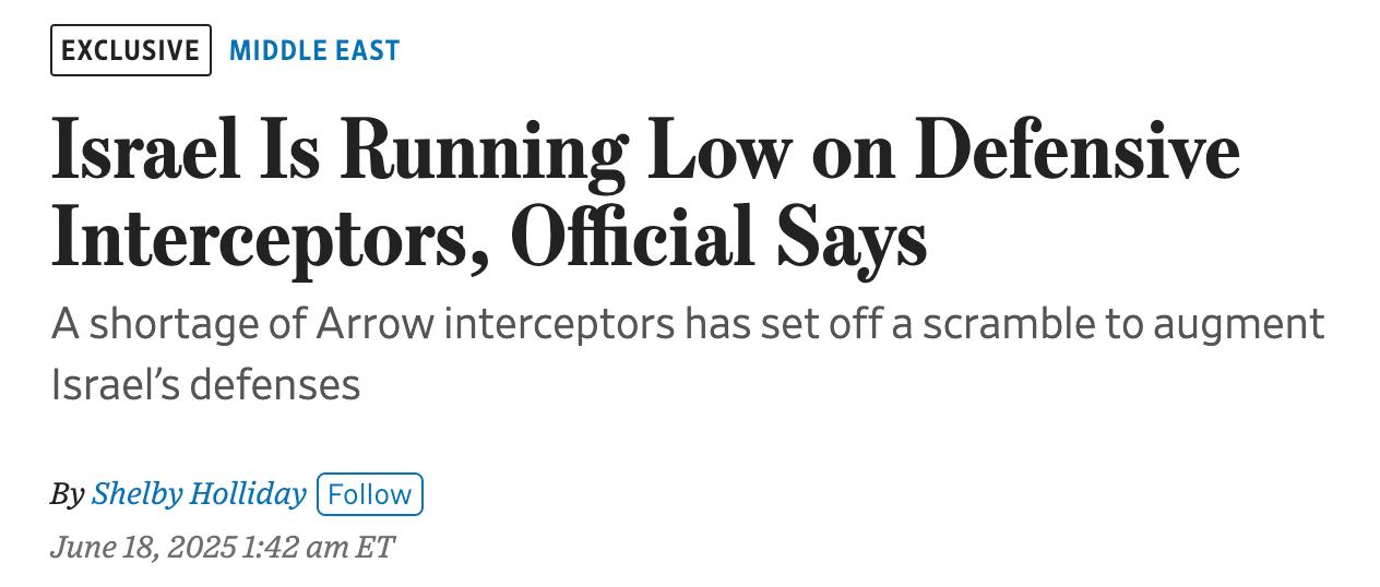 Истощение запаса ракет "вызывает обеспокоенность относительно способности страны противостоять баллистическим ракетам большой дальности Ирана", сказал источник издания. Вашингтон усиливает оборону Израиля с помощью наземных, морских и воздушных систем, а теперь "есть опасения, что США тоже исчерпают свои запасы перехватчиков", добавил он.