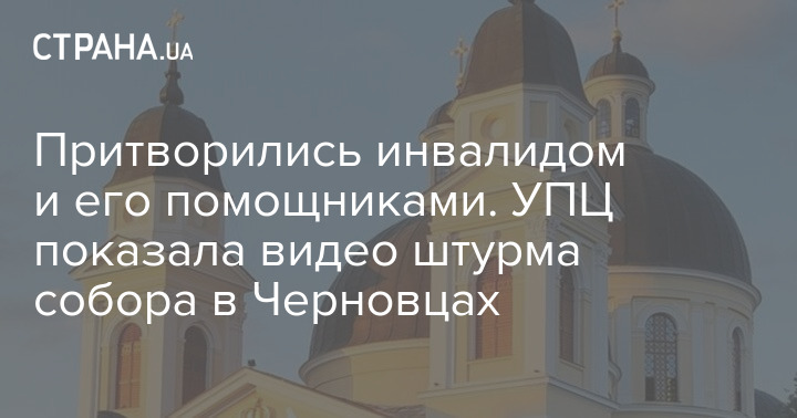Украинская православная церковь (УПЦ) опубликовала ролик, как спортивного вида молодые люди, пытавшиеся захватить собор в Черновцах, проникли внутрь под видом сопровождающих инвалида в коляске.