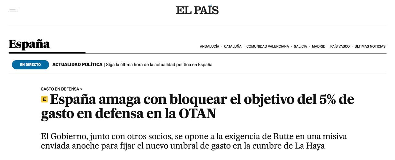 "Самый важный саммит НАТО со времен холодной войны, который состоится через несколько дней в Гааге, грозит бурей", - пишет El Pais.